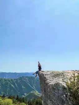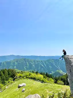 This spot is most famous in the autumn when it's covered in silver grass, but the blue sky and greenery of this season is also spectacular💚The cliff where I'm standing, Hiageiwa, is a popular photo spot📷✨