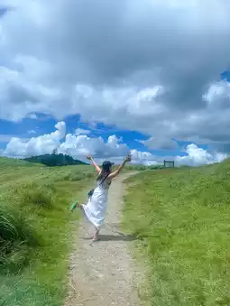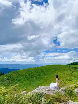 From the top of the plateau, you can see the mountains spreading in the distance and the contrast between the blue sky and green is very beautiful 🥺