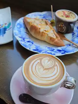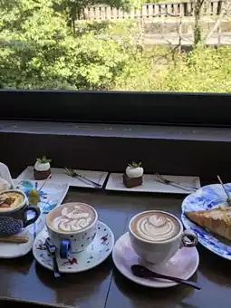 They're famous for their naturally yeasted bread and sweets, made with spring water from one of Japan's 100 famous springs. They also serve their own roasted coffee.