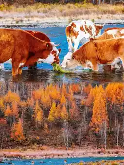 Arxan Buzhong River Autumn Exclusive! The Oil Painting Wonderland of Old Cows Eating Tender Grass Aershan National Forest Park by Luna Brooks Oct 17, 2025