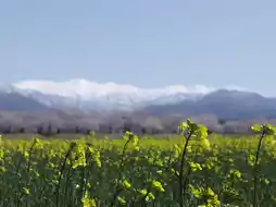 Tulips and rapeseed flowers are blooming in the fields right next to them.