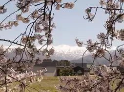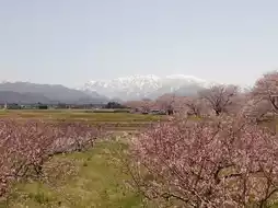 In Funakawa, Toyama Prefecture, there is a spot where you can view the mountains that still have snow on them along with these cute flowers.