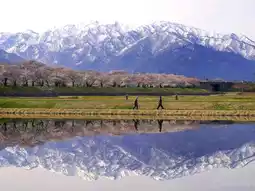 The best time to see the cherry blossoms is when the Asahi Town Agete Festival is held, but if you don't come early in the morning, the parking lot will fill up quickly. Also, it is recommended to come early in the morning to enjoy the beautiful reflections in the water-filled rice fields.