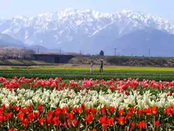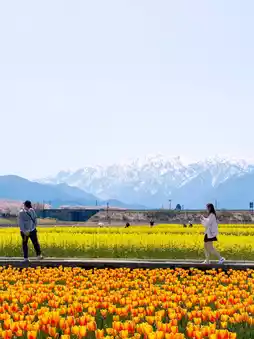 Japan's superb cherry blossom scenery "Spring Quartet" πΈ Snow Mountain. Cherry blossoms. Tulips are so popular!