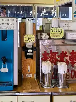 Oshibori, water, and disposable chopsticks are self-service.