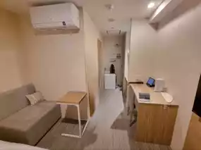🛏️ Comfortable room The room here is clean and decorated in a modern and beautiful style. The furniture color is minimalist wood grain contrasting with clean white. It is not scary at all. The room has complete facilities, such as a flat-screen TV, free Wi-Fi Air conditioning and heater The interior design of the room has a small working corner, suitable for those who want to work while relaxing. 🛏️