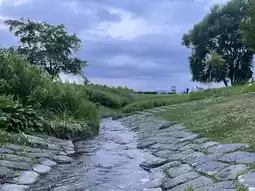 Walking to Kitasaito Park in the afternoon, the greenery is lush, there are children playing in the distance, and the river flows softly beside you. The sunset slowly falls, dyeing the entire Asahikawa with a gentle orange-red color, and the river surface is sparkling, as if saying goodbye to the sound of today's walking path.