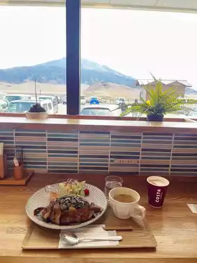 Aso Volcano is located in Aso City, Kumamoto Prefecture. The restaurant we ate at is on the first floor of the Aso Volcano Museum and is located in the same store as Costa. Its name is Grass Land and its address is: Japan 〒869-2232 Kumamoto, Aso, Akamizu, 1930-1 Inside the Aso Volcano Museum