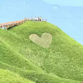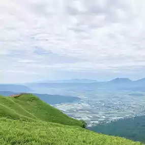 The natural observation deck at the highest point of the Aso outer rim is a spectacular spot where you can see the 360° nature, with grasslands spreading out not only in front but also behind the observation deck!