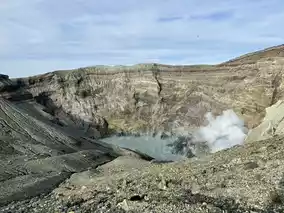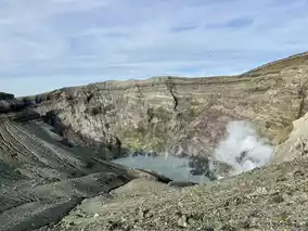 A volcanic crater that is open on days when there is no eruption. On the day we went, there was no eruption, so we could go up and see it. It's as beautiful as Mars 😂
