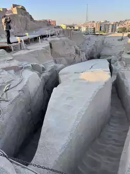 The Unfinished Obelisk, located in the ancient quarries of Aswan, Egypt, is one of the region's most iconic historical sites. Originally commissioned by the pharaoh Hatshepsut, this massive granite obelisk would have been the largest in Egyptian history, standing 42 meters tall and weighing over 1,000 tons. However, due to cracks during the carving process, construction was halted, and the obelisk remains in its original location, offering a valuable window into ancient Egyptian stone craftsmanship.