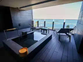 It was a luxurious hotel where you could enjoy the open-air hot spring baths and delicious cuisine while looking out at the spectacular ocean view that is full of Atami's uniqueness.