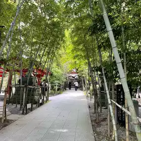 When you arrive at the shrine, you'll be greeted by a torii gate surrounded by trees. It has a very nice atmosphere.