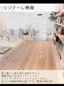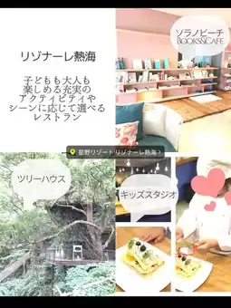 ①Risonare Atami [Recommended points for children] * "Forest Air Base Kusukus" has a tree house and a floating tree athletic course! * "Sorano Beach Book & Cafe" is like a sandy beach ♪ There are picture books so children can enjoy it too * There is also climbing for kids ♪