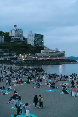 📍To reserve a seat, just spread a picnic mat on the ground, and you can use four bottles of water to hold down the corners. If you arrive in Atami early, you can also visit other places.