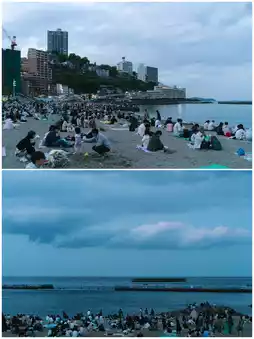 📍It's not too difficult to get a spot on the beach, you can still find space at 5 PM, and even if you grab a front row, people will continue to move forward before the show starts.