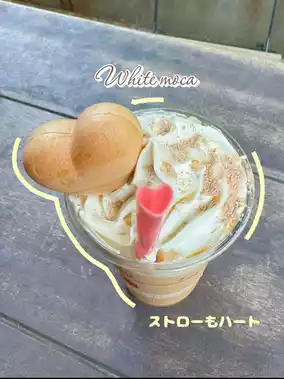 ➸Tips︎︎︎︎︎︎☑︎We recommend the "White Latte" from the cafe menu. There is a secret inside the heart monaka🤭The charred powder is a source of power charge🤍