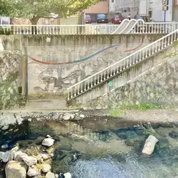 After the meal, I took a walk along the Ito River. The bridge is famous for its bridge and wall art. I enjoyed the retro atmosphere that felt like I had traveled back in time.