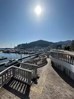 There are benches on the promenade "Moon Terrace" where you can relax while feeling the sea breeze. You can see Hatsushima and Izu Oshima, and it's especially spectacular on a clear day. *2nd photo