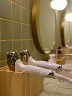 The changing room, which features a mirror that represents the phases of the moon, has a moderate retro feel and is very cute, and the hair dryer is ReFa, which was a nice point for girls🪞✨