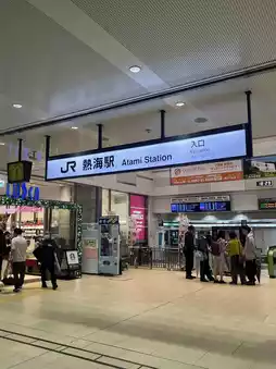 From Tokyo Station, you can take the Shinkansen for about 45 minutes (reserved seat costs 6,100 yen) to arrive at Atami. The name 'Atami' (熱海) means 'hot sea,' and it originated from the phenomenon where hot springs bubble up from the sea, turning the seawater into hot water. 😲