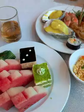 Prefer a sit-down setting? Discoveries Restaurant offers nightly three-course meals with impeccable service. From grilled prawns to chocolate soufflé, every dish is artfully presented.
