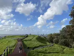 Walking along the circular wooden pathway around the crater, you can enjoy a 360-degree view of the city. Rangitoto Island, the harbor, and the Sky Tower are all within sight. I especially recommend visiting in the evening when the golden glow of the sunset reflects off the rooftops, creating a deeply moving scene. The area is frequented by locals jogging or walking their dogs, giving it a relaxed and uncommercialized vibe.