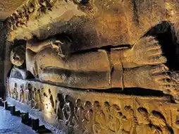 • Ancient Buddhist Art: Over 30 caves carved into a horseshoe-shaped mountain were built around 350 CE by monks as meditation centers.