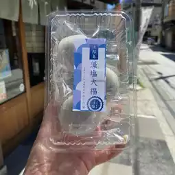 This is a long-established Japanese sweets shop in Iwaya, Awaji Island, founded in the Meiji era. All of the products are handmade. I have seen them at the Iwaya Port shop and in supermarkets on Awaji Island. The "Awaji Island Moshio Daifuku" I bought has a smooth bean paste filling and mochi made with seaweed salt. The mochi part was soft and fluffy, and went perfectly with the smooth bean paste, making it delicious. I recommend it as a souvenir from Awaji Island.