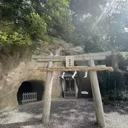 This shrine is located in a cave under the cliffs of the ruins of Iwaya Castle, about a 3-minute walk from Iwaya Port.