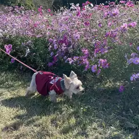 When we visited in early November, the cosmos were in full bloom and it was very beautiful. As long as you keep your pet on a leash and follow proper etiquette, you can walk around without using a pet cart or holding it.