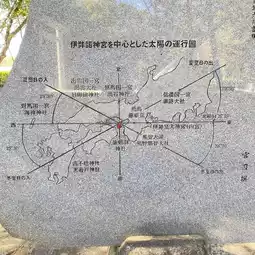 This is the "Hinowakamiya and the Signpost of the Sun" at Izanagi Shrine. It is a romantic stone monument that was also featured on a certain TV program. It shows the relationship between the movement of the sun with Izanagi Shrine at its center and famous shrines. Due east is Ise Shrine (Naiku), due west is Umikami Shrine (Tsushima), at the place of sunrise on the summer solstice is Suwa Taisha (Lake Suwa), at the place of sunset is Izumo Taisha and Hinomisaki Shrine, at the place of sunrise on the winter solstice is Kumano Nachi Taisha (Nachi Otaki), and at the place of sunset is Takachiho Shrine (Miyazaki Prefecture). If you think about the theory that Awaji Island is the core where the gods reside, this is a recommended monument that will give you a sense of mythological romance.