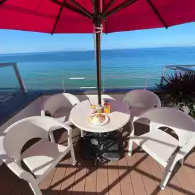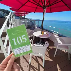 Awajishima Resort accepts reservations for private rooms. Seasonal fresh fruit pancakes are 1,680 yen, with whipped cream added for 220 yen. The room is Room 105, a private room with a detached terrace. You can't see the ocean from the detached room, but it has a terrace so the view is not an issue. In fact, I recommend it because the terrace is spacious. The pancakes were great, the view was spectacular, and it was a truly blissful moment.