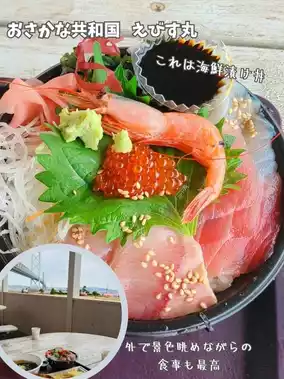 I had a seafood bowl for a slightly late breakfast while looking at the Akashi Kaikyo Bridge♪