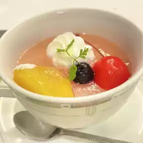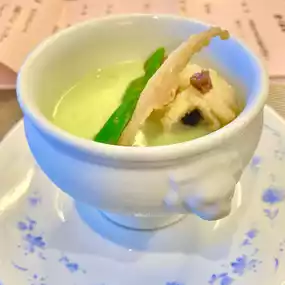 ・Raku-sara: Awaji Island onion cold chawanmushi with edamame sauce