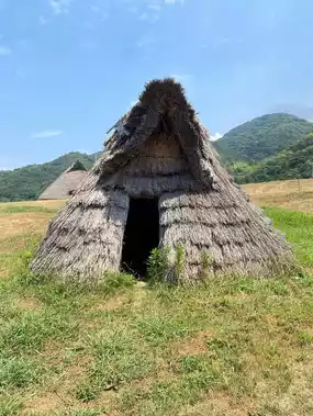 The Gotonagakakiuchi Ruins are pronounced "Gossakaitoiseki." The ruins were discovered under farmland and were the remains of a late Yayoi period ironware village. They were restored and designated as a national historic site. The restored ironware workshop, "Gossa Ironware Workshop," was cool even in midsummer. This is a hidden gem of Awaji Island where you can enjoy not only the sea but also the mountains. Please visit the Gotonagakakiuchi Ruins, where you will feel like you have traveled back in time. There is a sign warning of electric shock, so please be careful of the power lines. ✱-----------------------------------------------