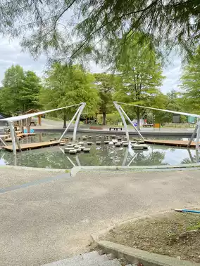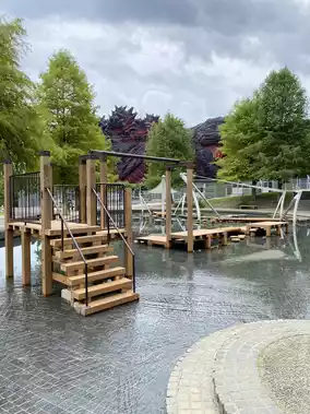 This water play area is popular with young children during the summer. With the Godzilla from Nijigen no Mori right in front of you, it's perfect for photos. The area is cleaned about twice a month, so please check the official website before visiting.