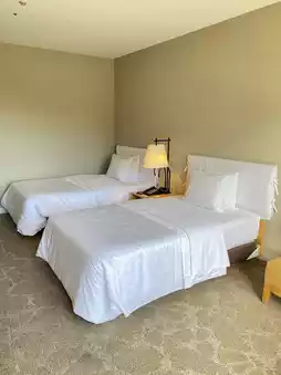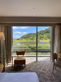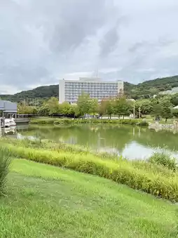 This deluxe twin room is spacious and features an impressive view of greenery through the large windows. Although you can see the sea from the balcony, the primary view is of the forest. Located in Yumebutai, you can visit attractions like the Hyakudan-en Garden and Awaji Island National Akashi Kaikyo Park during your stay (the 5th photo shows the hotel from the park). This hotel is highly recommended for sightseeing on Awaji Island.
