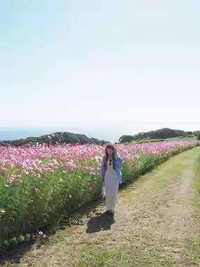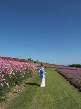 Hana Sajiki on Awaji Island is currently in its peak season. You can enjoy fields of flowers such as cosmos, globe amaranth, and lavender all at once. Additionally, the contrast of the blue sky, sea, and flower fields during the sunny autumn days is truly stunning. Awaji Island is also appealing for its fewer tourists, allowing for a more relaxed travel experience. Within the premises, there are cafes and soft-serve ice cream shops as well.