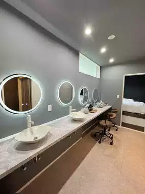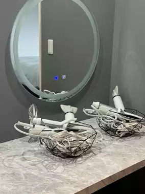 The washroom is also spacious and equipped with a ReFa hair dryer and hair iron, which is great for women.