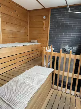 You can see the sea from the sauna, it's a great view! You can also rent sauna hats and sauna wear 🙆♀️