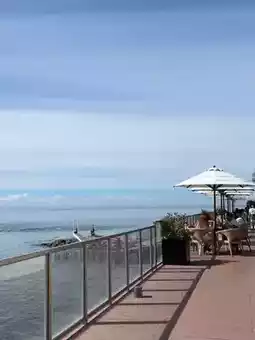 There are indoor and plenty of outdoor seats, and all seats are first-row 180-degree sea view seats🌊 Looking at the blue sky and super clear sea, it really feels like a vacation⛱️You can sit comfortably for an afternoon!