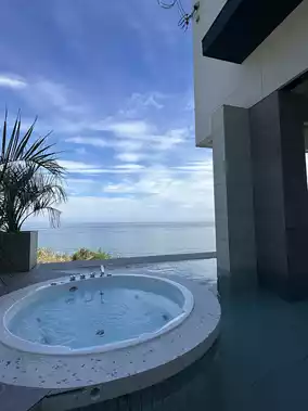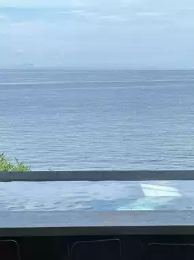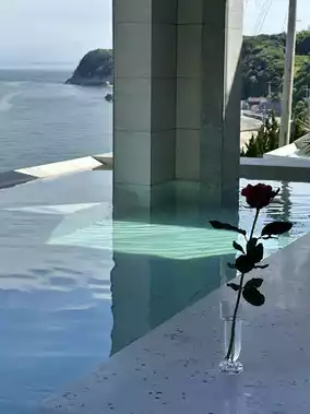 There are counters lined up in front of the pool, so you can enjoy the healing effects of the pool and the sea without swimming.