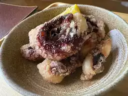 🦑Recommended: Fried local octopus, rice plate, cake & tea