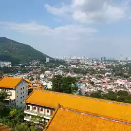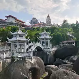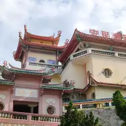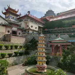 #Malaysia attractions This place is called Wat Khao Tao by Thais. It is another temple that I must say is very big. There is no entrance fee to this temple. If you drive yourself, you can drive up to each floor or you can park your car on the ground floor and take the temple's elevator up to each floor. There is a fee for taking the elevator. But I must say that this temple is very beautiful and you should not miss it. If you come to Penang, you should stop by this temple. On the top is the Guanyin Shrine. Outside is a large standing Guanyin statue. The roof is under construction. Below is the Ten Thousand Buddhas Pagoda. There are many souvenir shops and many photo spots.