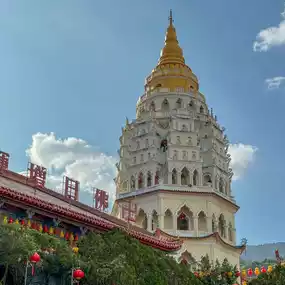 Kek Lok Si's sprawling grounds are filled with beautifully crafted prayer halls, pavilions, and bell towers. The temple is crowned by a striking seven-story pagoda known as the Pagoda of Ten Thousand Buddhas, which houses thousands of Buddha statues, each intricately designed and unique.