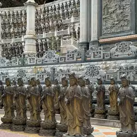 The temple's centerpiece, a massive statue of the Goddess of Mercy, Kuan Yin, stands as a symbol of compassion and peace, drawing devotees and tourists alike. The bronze statue, accompanied by a series of smaller statues and offerings, creates a serene atmosphere, ideal for reflection and meditation.