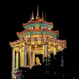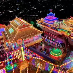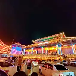 Adorned with thousands of colorful LED lights, Kek Lok Si Temple transforms into a mesmerizing spectacle of radiant beauty. The intricate details of the temple's architecture are accentuated by the vibrant hues, creating a breathtaking panorama that captivates visitors from near and far.