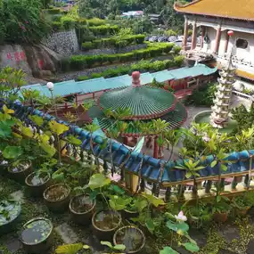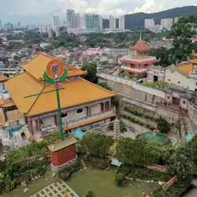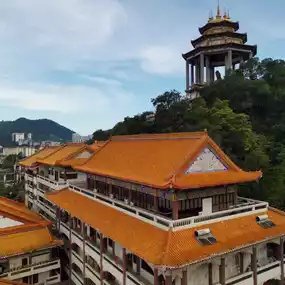 Kek Lok Si Temple is a Buddhist temple located in Air Itam, Penang, Malaysia. It is one of the largest and most important Buddhist temples in Southeast Asia. It is famous for its architecture, intricate artwork, and serene atmosphere. The temple offers panoramic views of the surrounding area of Air Itam. There are gardens, ponds, and pavilions inside the Kek Lok Si Temple. One of the most iconic features of Kek Lok Si Temple is the 30 meters tall of Kuan Yin, the Goddess of Mercy, which stands at the entrance to the temple complex.