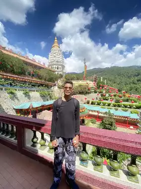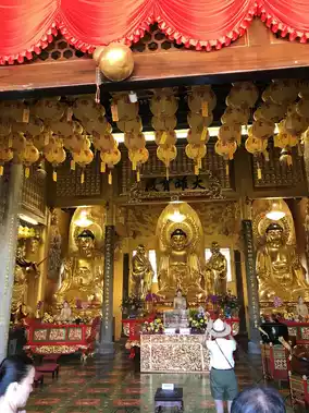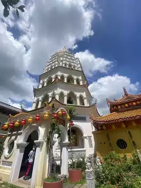 When I went, the weather was nice and cool. It was very pleasant to walk around. I started by worshiping the Buddha in the main temple with a large Buddha statue in the middle of the room. Then I walked up to the various zones of the temple. There are Chinese lanterns hung in rows for taking pictures. There is a beautiful garden for relaxing. And what you can't miss is the large Guanyin statue on the top of the hill. You have to take the funicular lift up. The view from the top is amazing! You can see Penang in a 360-degree panorama. You can see both the mountains and the sea from the same angle.